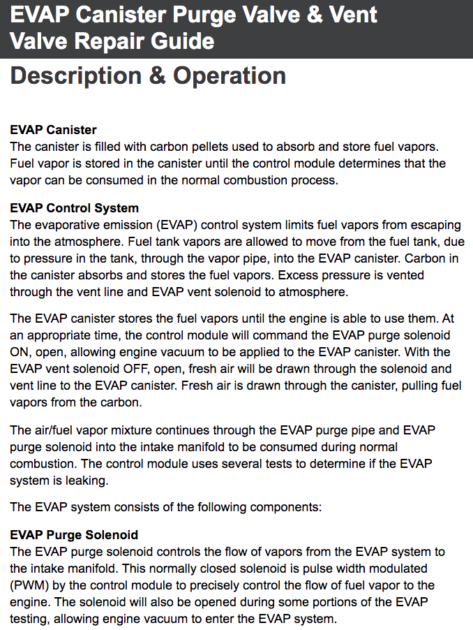 - Fuel vapor leaks: A faulty EVAP purge solenoid can cause fuel vapor leaks, which can lead to a strong gasoline smell near the vehicle.
