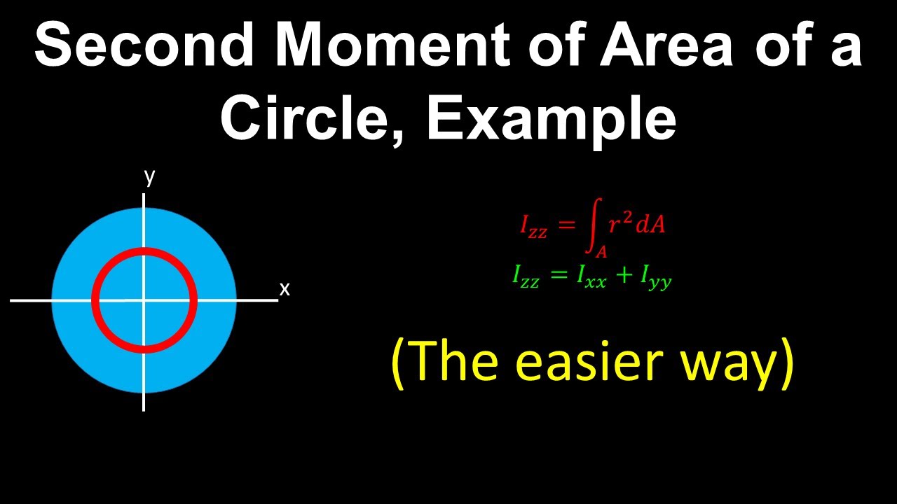 where ( I_x ) and ( I_y ) are the moments of inertia about the x-axis and y-axis, respectively. For a circle of radius ( r ), these are equal, and thus:
