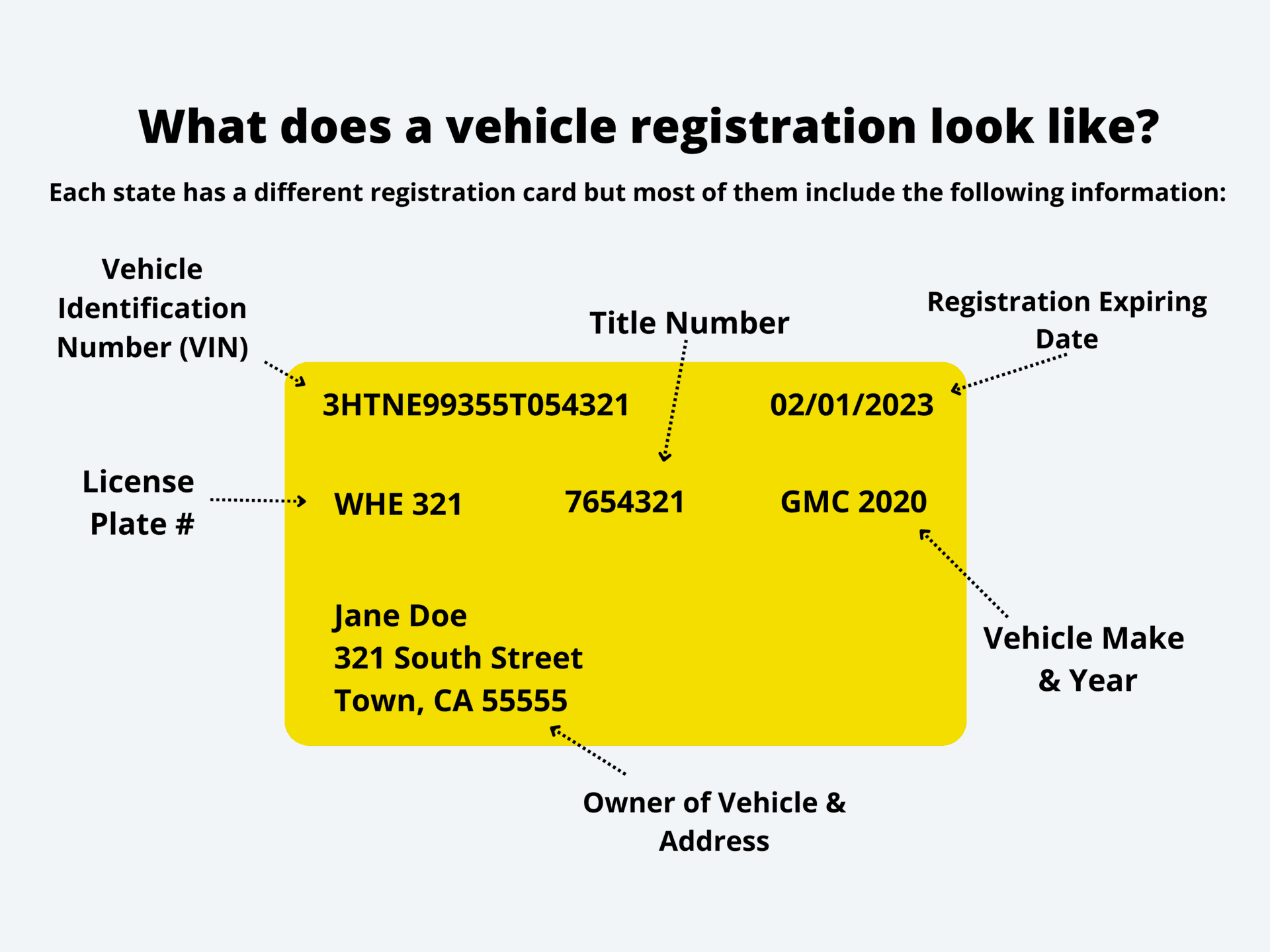 Some common details you can expect to find on your vehicle registration include: